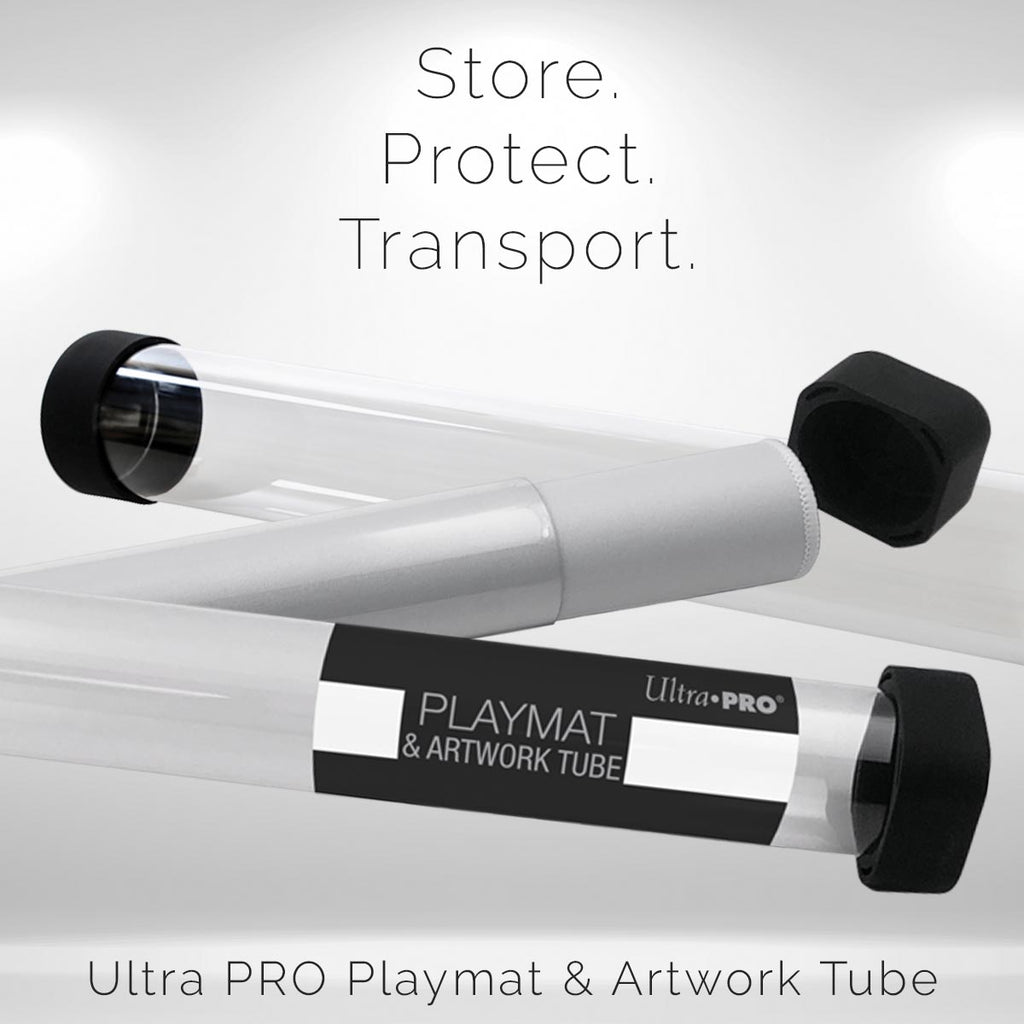 The Ultra PRO Playmat and Artwork Tube is perfect for storing your standard size playmats, transporting artwork or documents, or for storing maps and other small collectibles. The tube is 15 inches in length and 2 inches in diameter. The black rubber caps have a snug fit that will not fall off, and the squared design will keep your tube from rolling away!