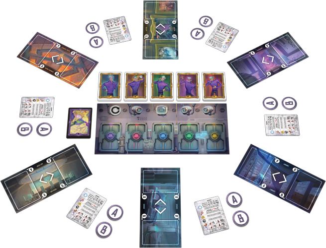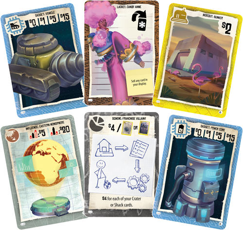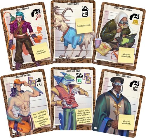 Each Asset type has a unique way of scoring points, adding new wrinkles as you collect. There are also Keys, which don’t give you anything on their own, but let you draft one of Dr. Schism’s powerful Special Assets. These include connections to his Lackeys, who can help you with powerful one-time effects, or blueprints for his ingenious Schemes, giving you new ways to score! But watch out—if you’re only paying attention to your neighbors, one of the villains across the table might beat you to the Special Asset you need!