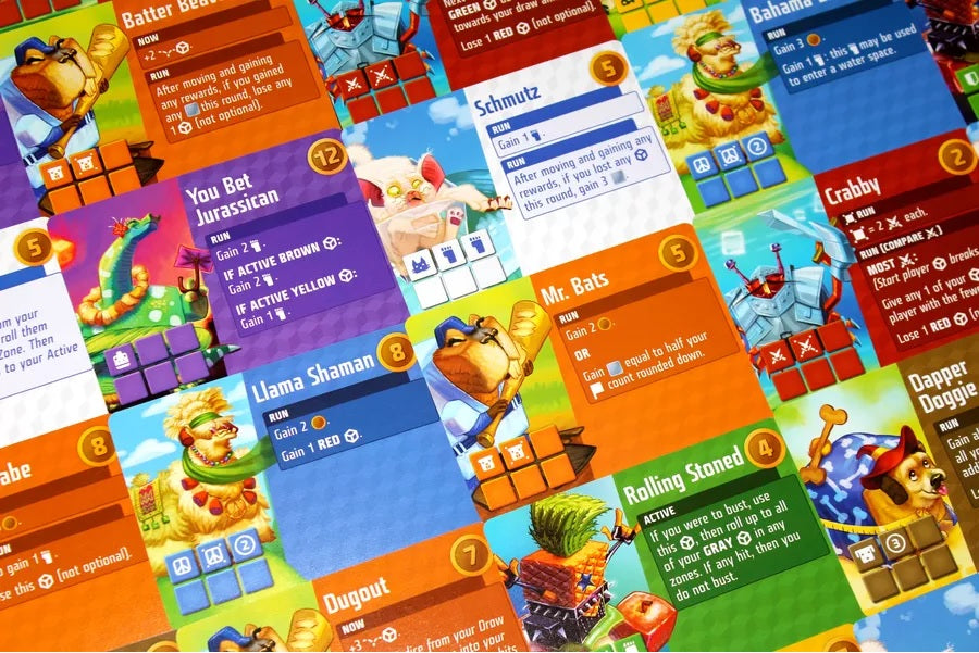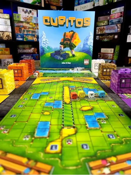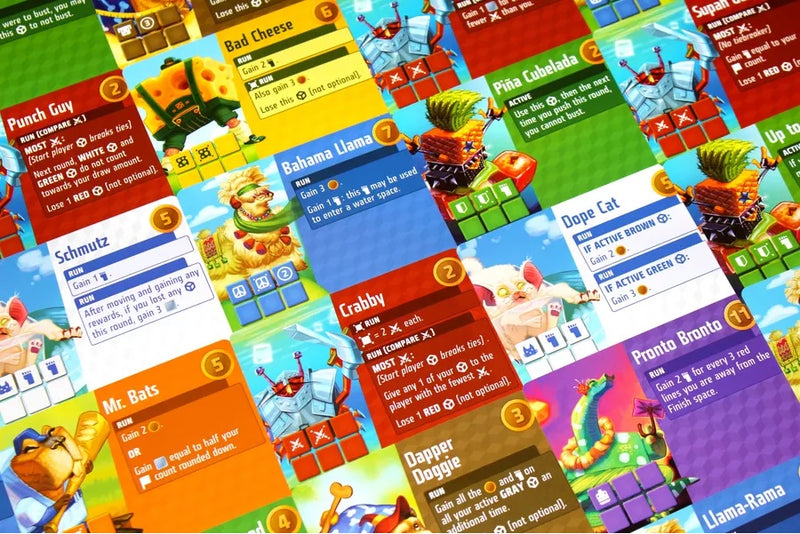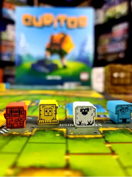 Players take on the role of participants in the annual Cube Cup; a race of strategy and luck to determine the Cubitos Champion. Each player has a runner on the racetrack and a support team, represented by all the dice you roll. Each turn you roll dice and use their results to move along the racetrack, buy new dice, and use abilities. But you must be careful not to push your luck rolling too much or you could bust!