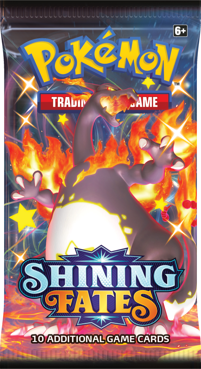 Shiny Pokémon are so extraordinary that they’re almost never seen, and Trainers who catch them are considered quite lucky…and yet they can be yours in the Pokémon TCG: Shining Fates expansion! More than 100 Shiny Pokémon appear on beautiful etched cards—alongside more than 30 Pokémon V and Pokémon VMAX, including the spectacular Shiny Charizard in its Gigantamax form! Seize your destiny and expand your collection with the Shining Fates expansion!