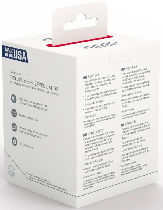 • Your favorite Deck box the Boulder 100+, now comes in fully solid colors. Oh…and all the components from the plastic to production, made right here, in the USA! Introducing the Boulder 100+ Solid line. Everything that you have come to love about the incredibly durable deck box, such as: extremely secure enclosure, precision fit for UG sleeves, fitting 100+ double sleeved cards, or 120+ single sleeved cards. All the quality you've come to expect from UG, value you'll love - Made in America.