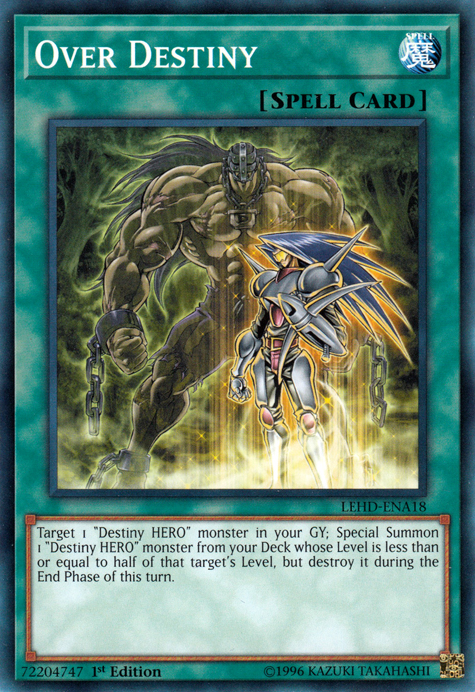 Target 1 "Destiny HERO" monster in your GY; Special Summon 1 "Destiny HERO" monster from your Deck whose Level is less than or equal to half of that target's Level, but destroy it during the End Phase of this turn.
