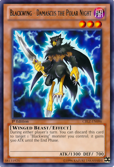 During either player's turn: You can discard this card to target 1 "Blackwing" monster you control; it gains 500 ATK until the End Phase.