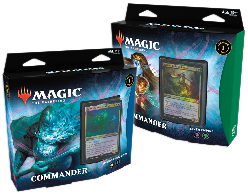 This is a preorder for the Kaldheim Commander Decks. This is a bundle of 1 of each commander deck.