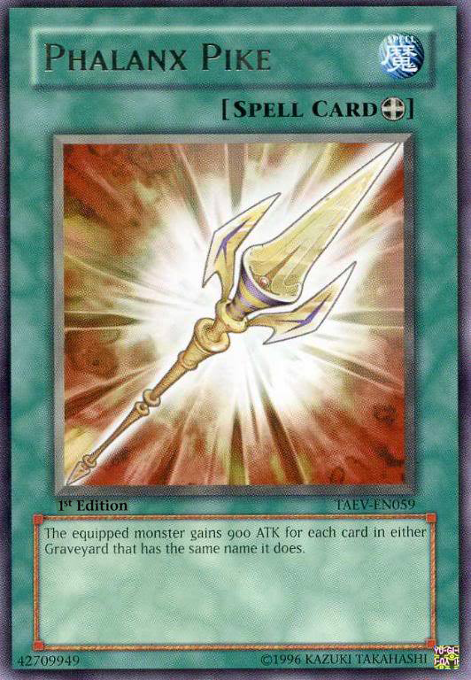 The equipped monster gains 900 ATK for each card in either Graveyard that has the same card name it does.