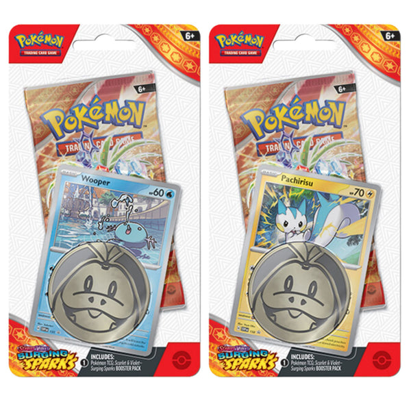 Terawatts of electricity crash down from the sky in a tropical paradise, setting the stage for the supercharged Pikachu ex! With the power of a Stellar Tera Pokémon ex, it lights up the shoreline, revealing a parade of dragon Pokémon led by the towering Alolan Exeggutor ex! Archaludon ex and Latias ex round out the horde, while new ACE SPEC cards and more new Pokémon ex bring surprises of their own. Currents crackle and dragons roar in the Pokémon TCG: Scarlet & Violet—Surging Sparks expansion!