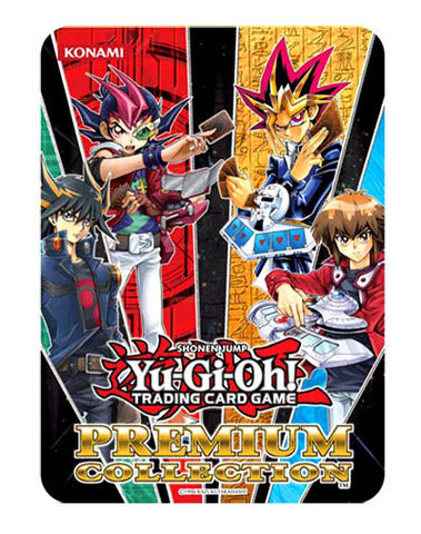 Three 4-card promo packs (all foil cards) + 2 variant cards - total of 14 foils in each tin. The 12 random foil cards will make up a 23-card set, which includes new cards from each of the 4 Yu-Gi-Oh! series. The 2 variant cards will be the same in each tin.